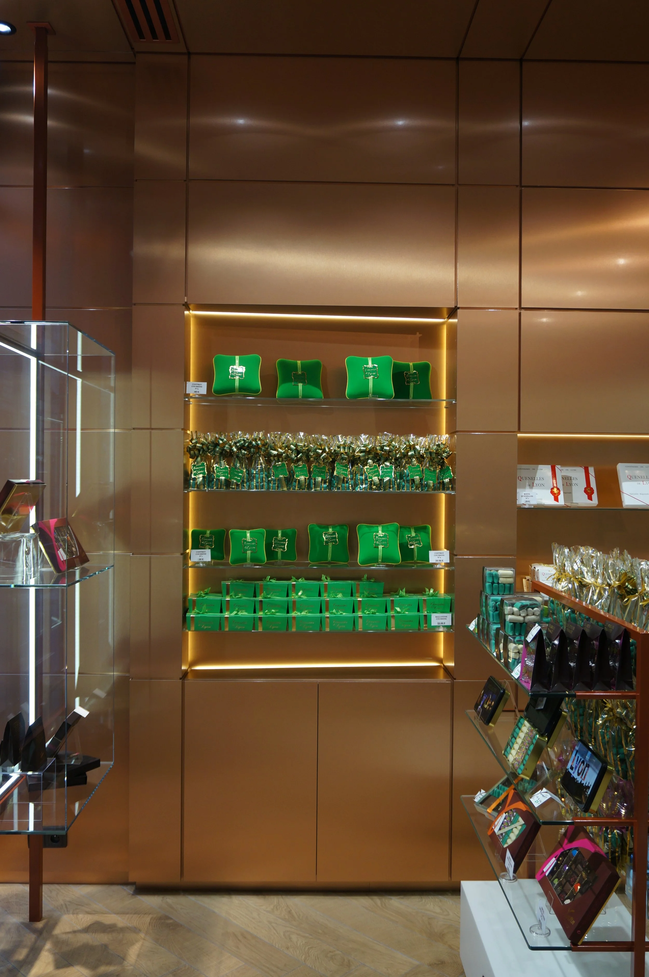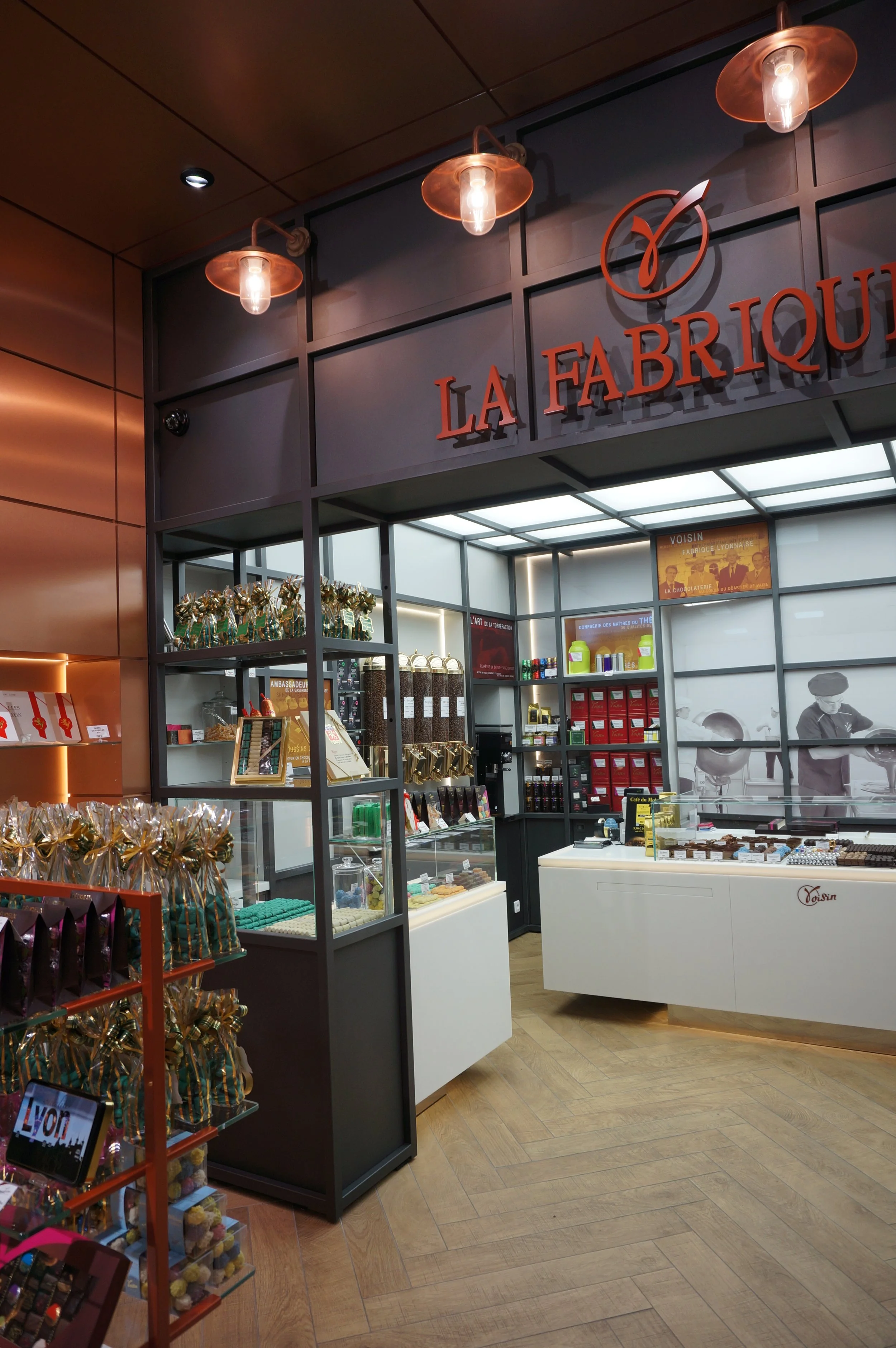 Création du nouveau concept des boutiques Voisin, privilégiant “l’esprit chocolaterie” avec le cuivre comme matériau principal, reflet de l’artisanat, évoquant le savoir-faire, l’histoire et la philosophie de la Maison Voisin.