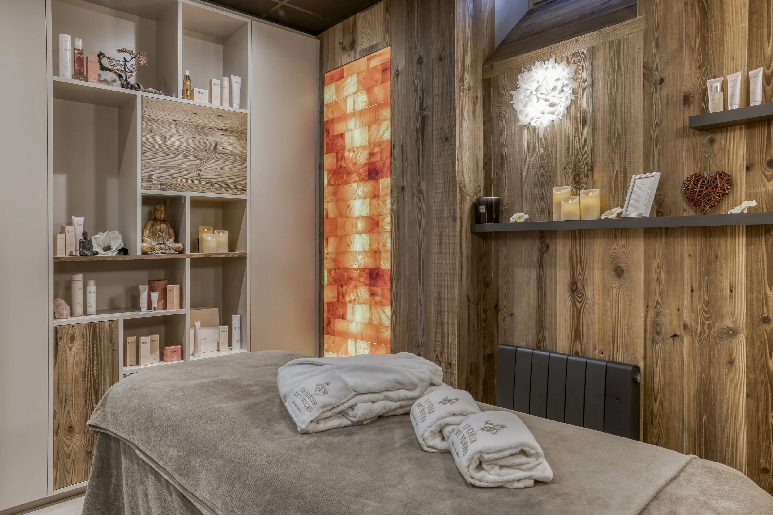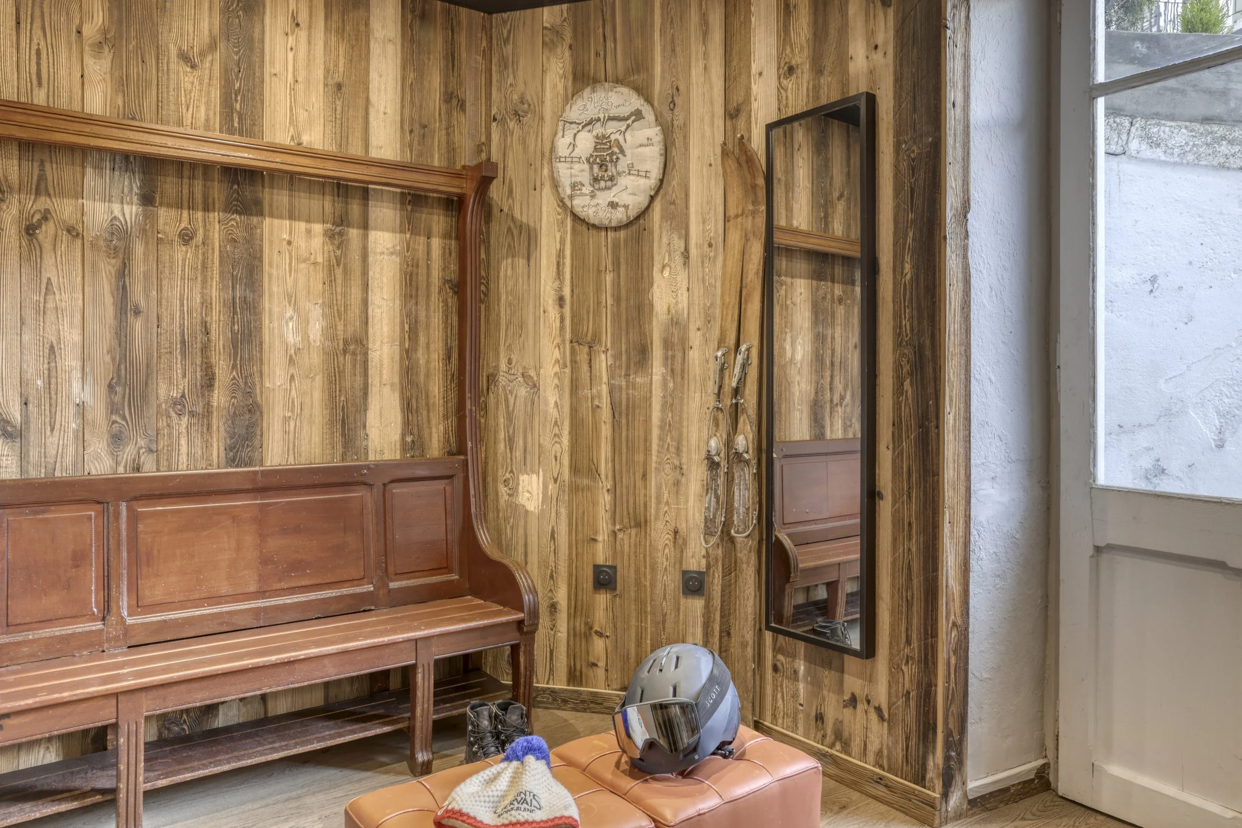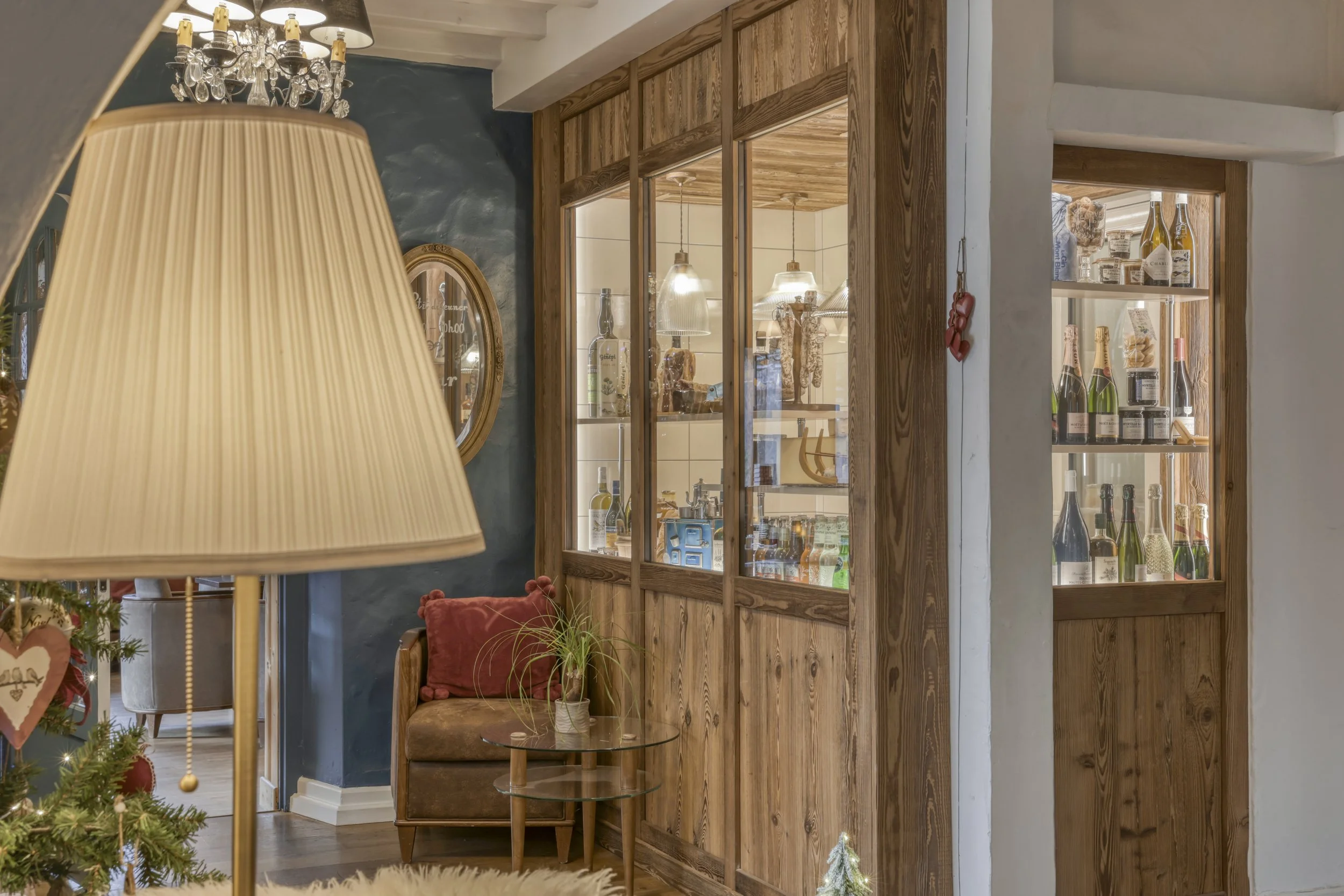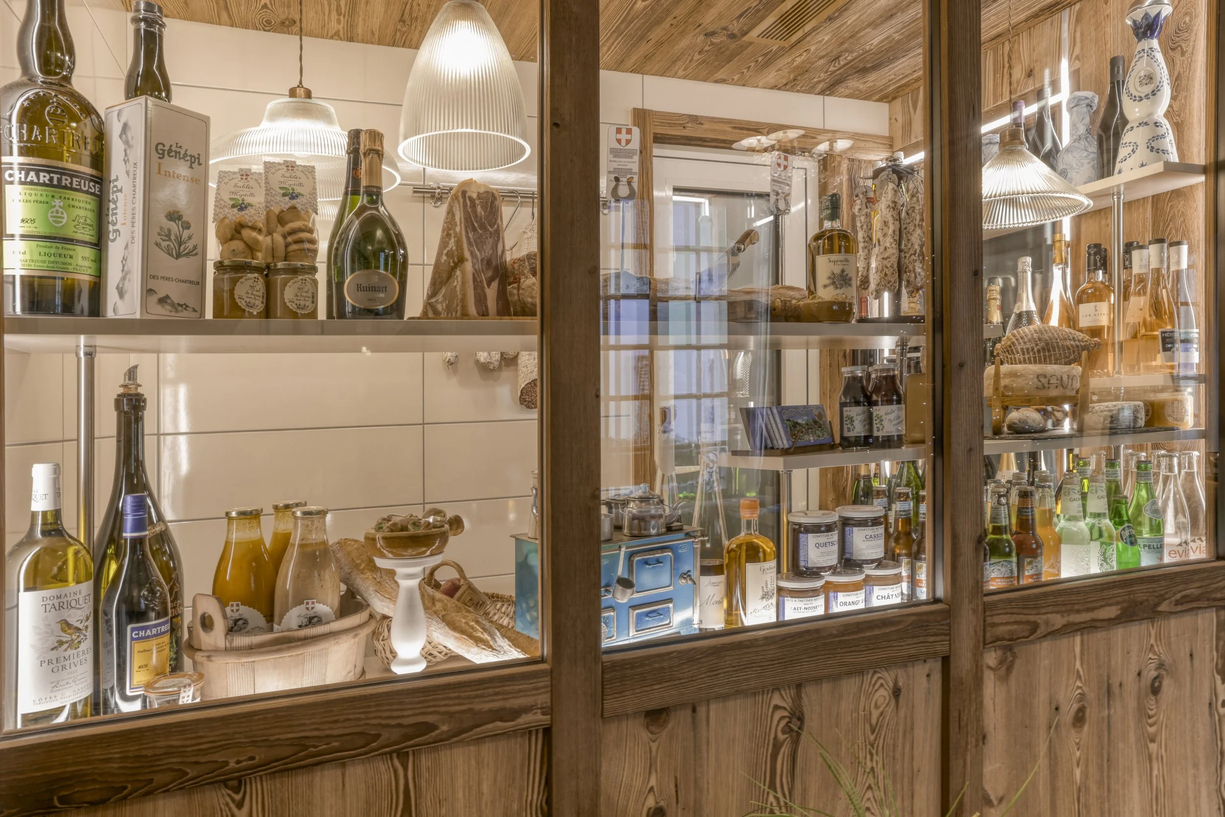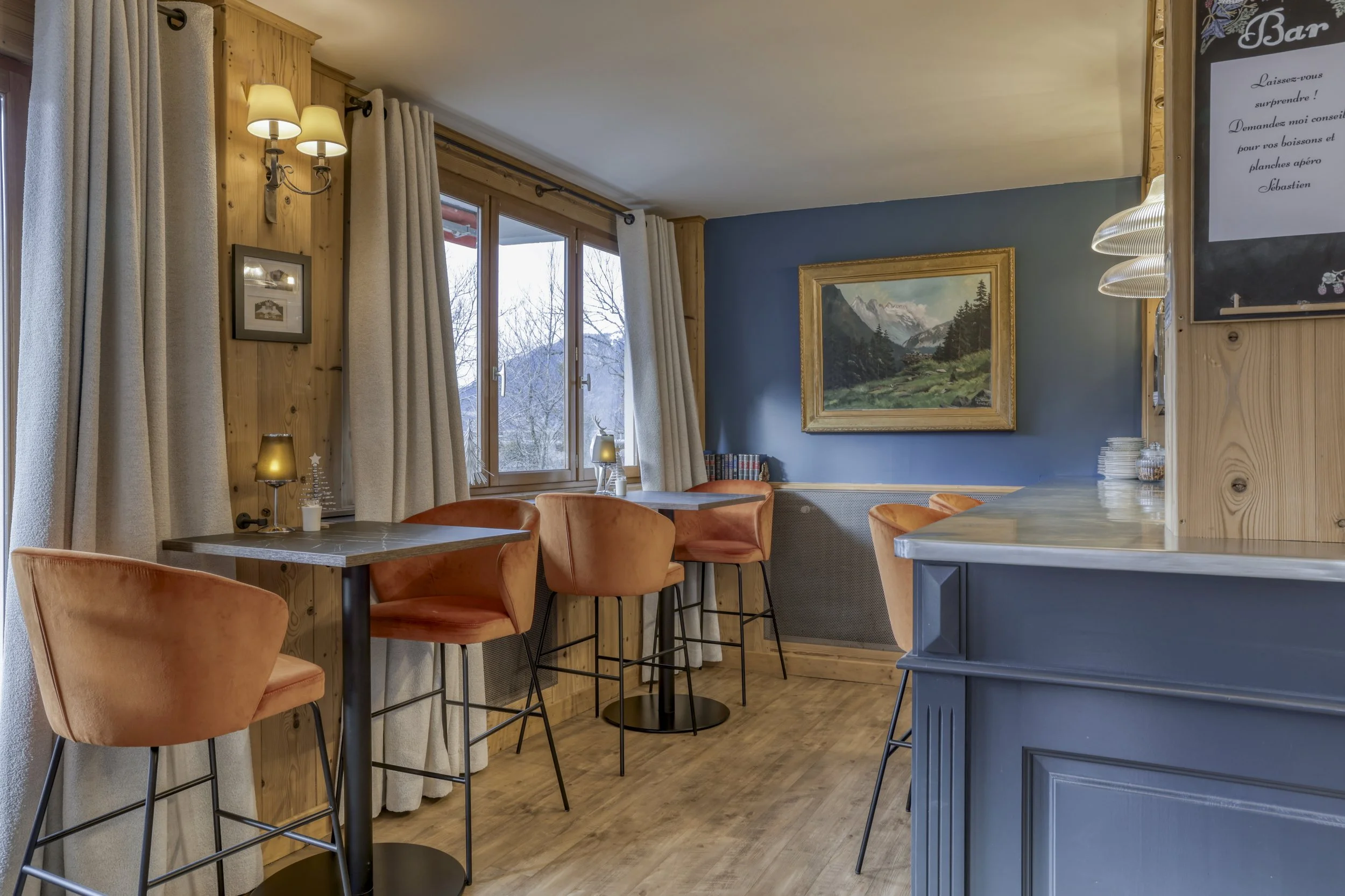 Aménagement et décoration des espace communs de l’hôtel (bar, cuisine, espace bien-être, ski-room), dans un esprit chic et montagnard, propice à la détente.