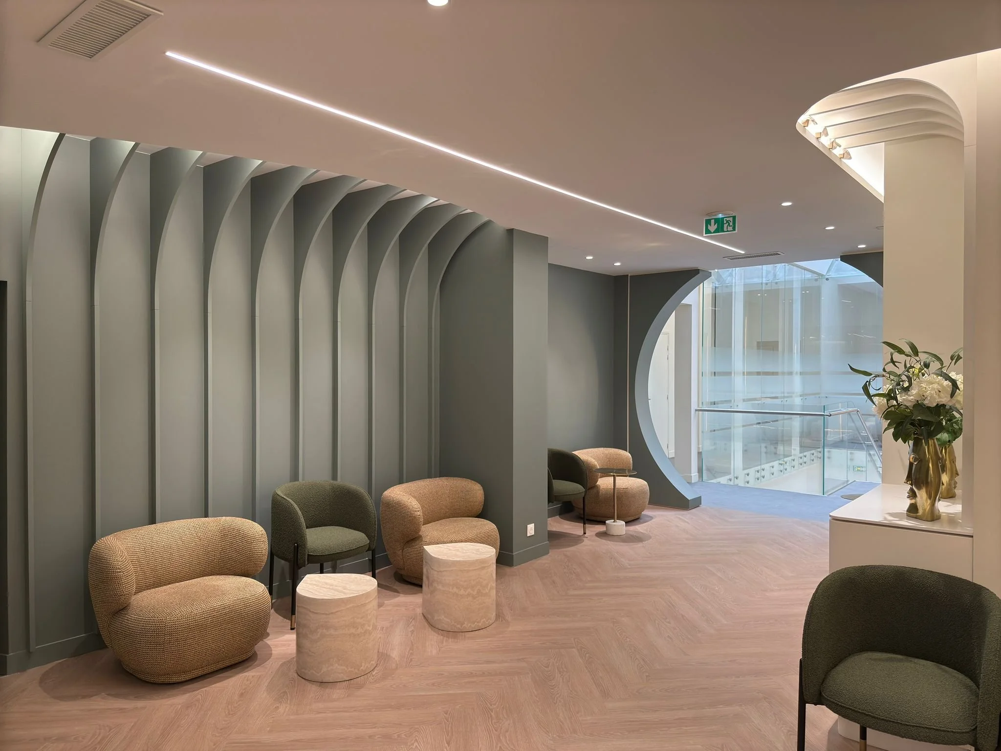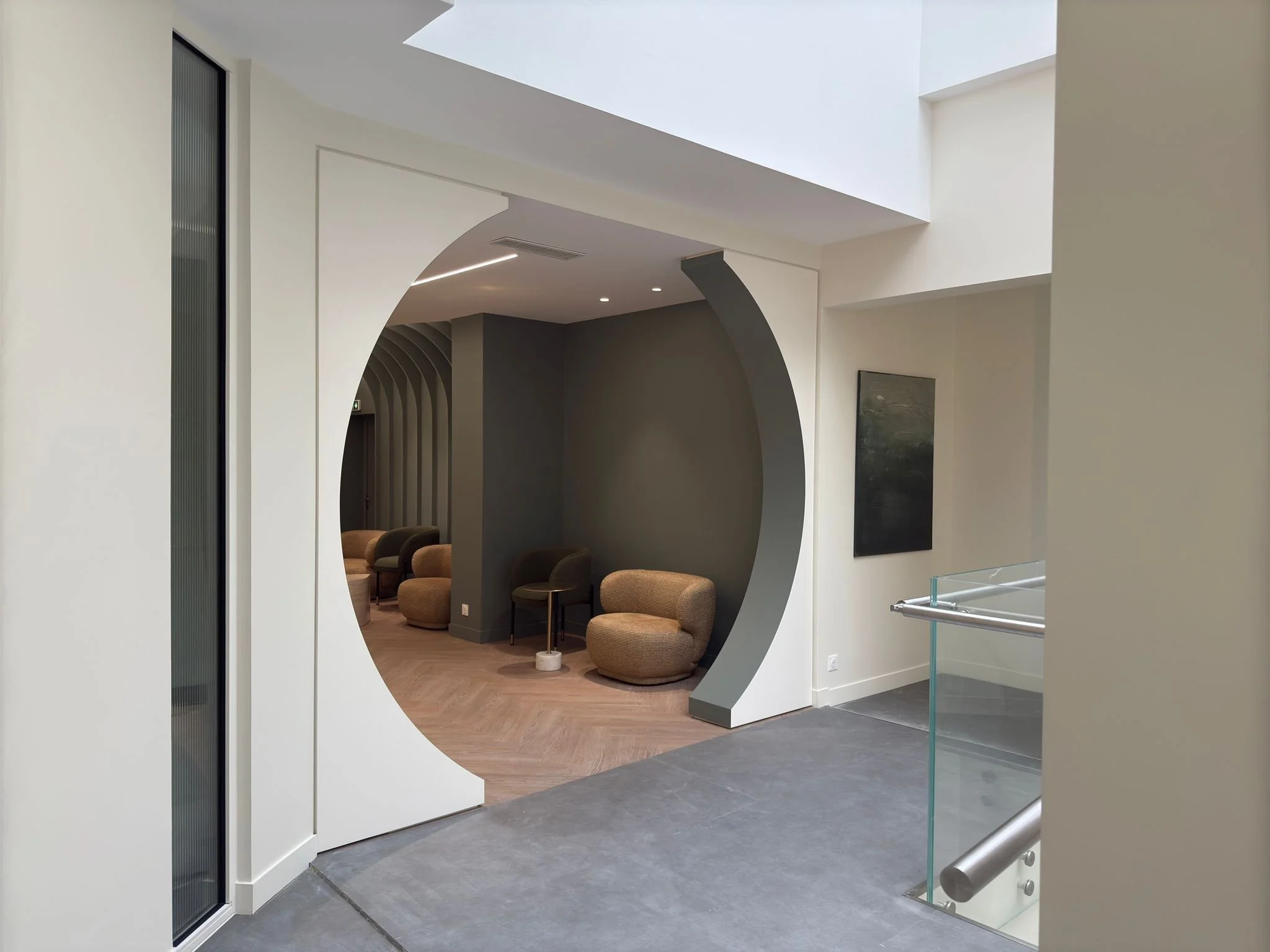 Aménagement d'un espace médical santé et prévention autour d'un concept spatial hybride reprenant les codes du bien-être.